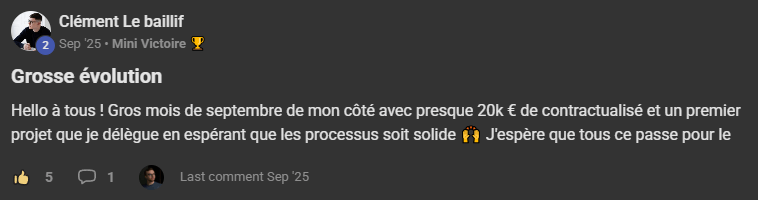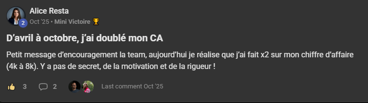 "Vendredi dernier, j'ai signé mon premier client à 1 200 € par mois. 1 200 € mensuel c'est déjà le Jackopt !"